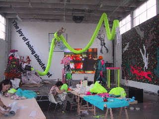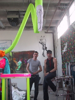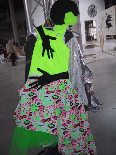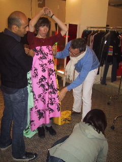 Melissa, Kiki and Alex in the process of fitting with Castelbajac/fabric made by us, outfits made for concert at Palais de Tokyo on 13th May. (Kevin B was also there!)